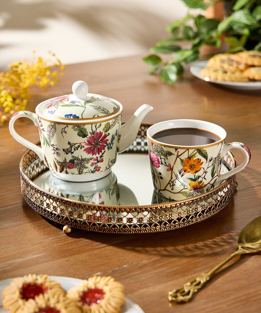This fine china mug-and-pot set is the perfect home accessory for any art lover. Featuring a William Kilburn-inspired print, it blooms with colour and character. Just throw them in the dishwasher for easy cleaning, and they'll stack together afterwards for a standout kitchen display.